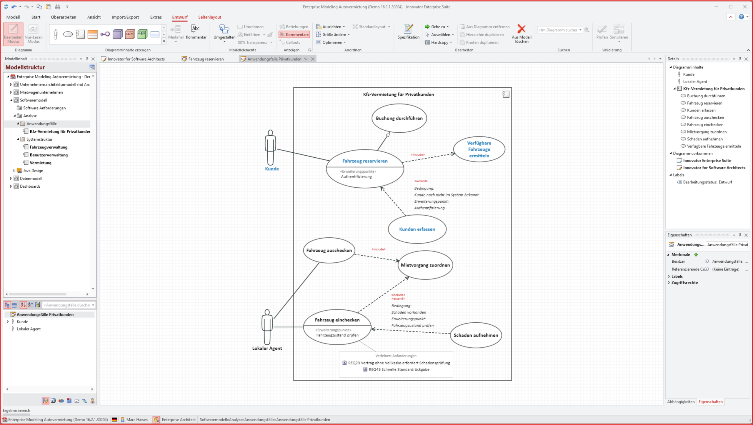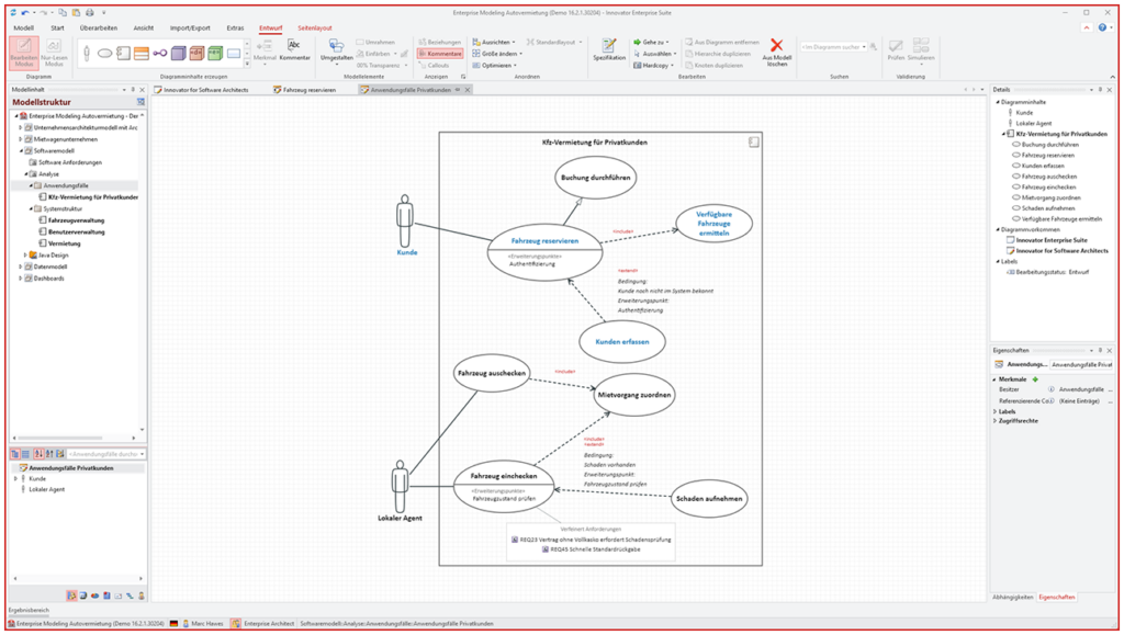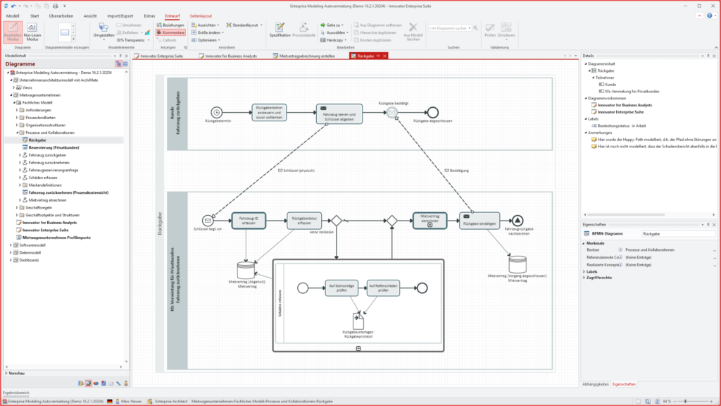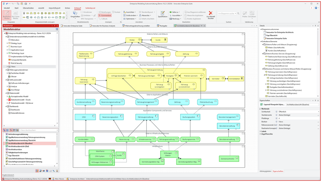 Innovator ist mehr als nur ein Ersatz für PowerDesigner. Innovator ist eine moderne, leistungsstarke Modellierungsplattform, die zukunftssichere Architektur mit intuitiver Bedienung und maximaler Flexibilität verbindet. Mit Innovator modellierst Du Geschäftsprozesse, Datenstrukturen, IT-Architekturen und Softwarelösungen durchgängig in einer zentralen Umgebung – unterstützt von internationalen Standards wie BPMN, UML, ArchiMate®, DMN und ERM.